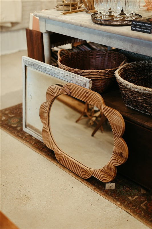 Distressed Vintage Mirror with White Frame